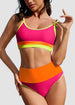 Do not dry cleanThis vibrant two-piece features a stylish tank top with bold color blocking and high-waisted triangle bottoms. Crafted from soft ribbed fabric, it’s designed for comfort and chic style at the beach or poolside.