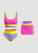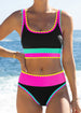 Eye-catching color-contrast patchwork creates a modern, sporty look that stands out at the beach or pool while maintaining a clean, coordinated style.