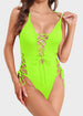 Introducing the Deep Plunge V Neck High Cut Lace Up Swimsuit, a perfect blend of bold style and flattering design. This swimsuit is crafted for those who want to make a striking statement while enjoying the sun and surf.