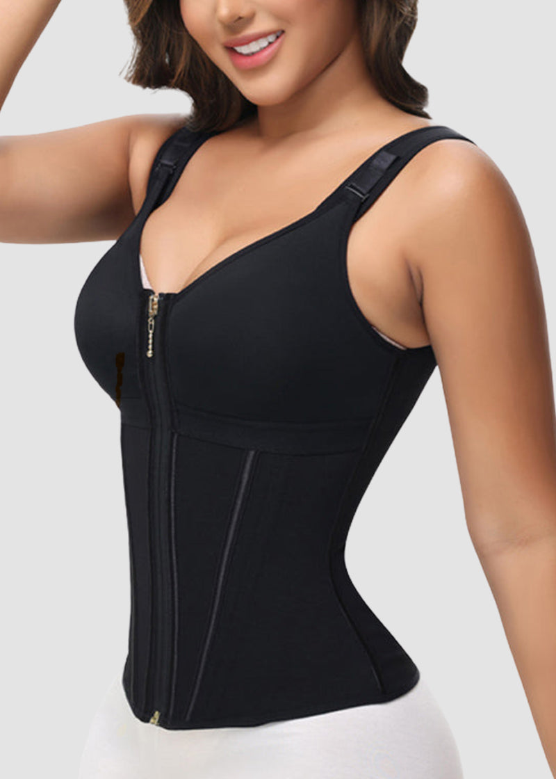 Double-layer compression (inner hooks + outer zipper) flattens stubborn lower belly while steel boning cinches the waist. Move freely with breathable rigidity that never digs.