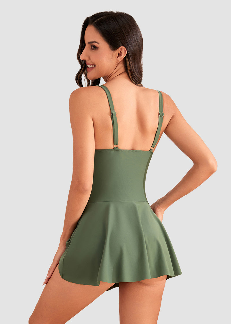 Featuring a stylish bow tie at the hem that transforms a simple swim dress into a fashion statement. This iconic design element adds a refined feminine touch, creating a visually stunning profile that captures attention at the pool or shore.