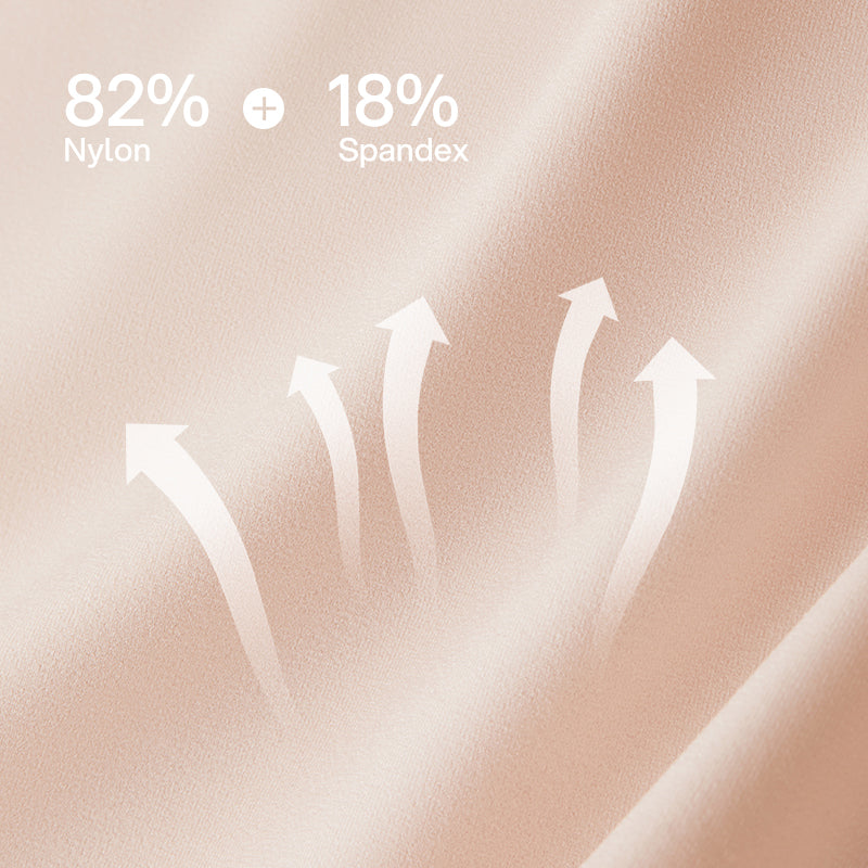 Crafted from a silky blend of 82% Nylon and 18% Spandex, this fabric stretches effortlessly and feels like a second skin. Lightweight and breathable, it keeps you cool and comfortable all day—while gently holding your shape with zero restriction.
