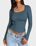 If you’re looking for a good staple long sleeve top this does the job! It’s the perfect length where you can tuck it in or not, it’s double layered so nice and thick and not see through at all. The only awkward part is the shoulders where you can tell it hasn’t been sewed super well but it’s easy to look past. Overall it’s good for the price.