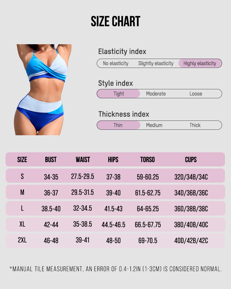 Make a splash this summer with the Twisted Front Color-Block High Waist Bikini Set! This eye-catching two-piece features a stylish twisted front top with bold color-blocking and flattering high-waisted bottoms. Perfect for turning heads at the beach or pool.